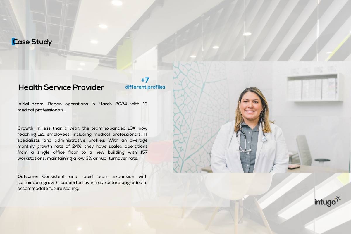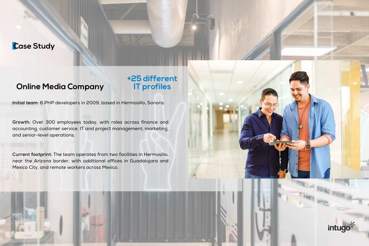 Intugo works differently. You choose your team. You manage their work every day. We take care of everything else — like setting up office space, recruiting and screening, handling payroll, HR, and making sure everything is legal in your BPO center. It’s your team, just based in Mexico, with full support behind the scenes.